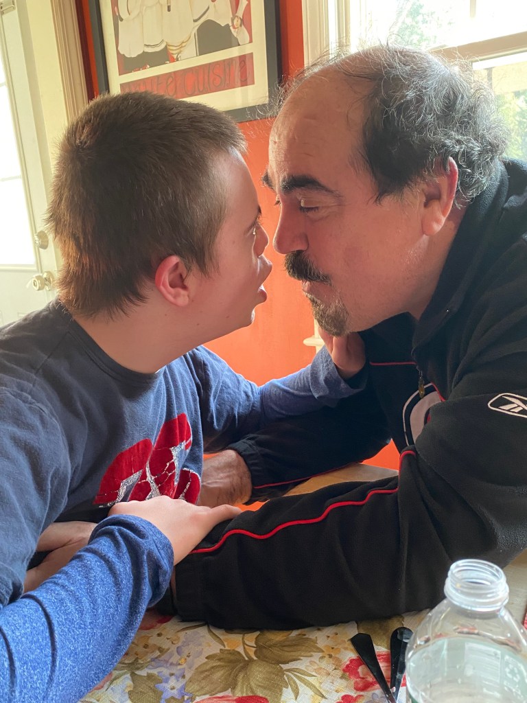 There are other considerations as well, despite the Coronavirus, such as the laundry, house cleaning, making meals, etc. These things must continue for our survival, but strangely enough, I find some solace in doing such mundane activities, probably because they are predictable and routine right now . It seems, though, like laundry has multiplied in our home since the Coronavirus, and there is only 3 of us! Other chores must also get done, so I have come to look at all of these necessities as “opportunities “ for Brian to practice “activities of daily living”, ( ADLs), and self help skills. These things are helping us to create a routine to our day which gives us a purpose and helps the time to pass. Brian’s teacher and therapists have done a fantastic job of providing educational/ therapeutic materials and continue to do so on a daily basis. The staff is checking in with us regularly and supporting our efforts at home. Initially, I was quite overwhelmed by the huge packet of educational resources that were sent home on the last day of school and daily “virtual blackboard learning”. At first, I felt guilty not being able to accomplish most of the “assignments” with Brian. Then I reminded myself that I have personal choices that I can make that will benefit Brian the most. Brian is not an “academic” and never will be. He is a vocational/ADL learner- plain and simple. So instead of driving myself crazy, I will extrapolate what I can from the available materials and apply them to learning when I can, as best as I can. For us, contextual learning works best, so for example, if we are eating breakfast, I can have Brian get his cereal bowl, pour out cereal, set the table, put dishes in the dishwasher afterwards, etc. All of the aforementioned steps work on ADL, occupational, physical, and speech skills simultaneously. There are many more “ natural” situations like this throughout the day, so as far as I am concerned, Brian is learning to practice a variety of skills that are specific to his educational plan in his natural environment, and that is good enough for me. Each day will vary as far as what gets done and how much is learned, but I have accepted this too, a very good choice for me as far as I am concerned.