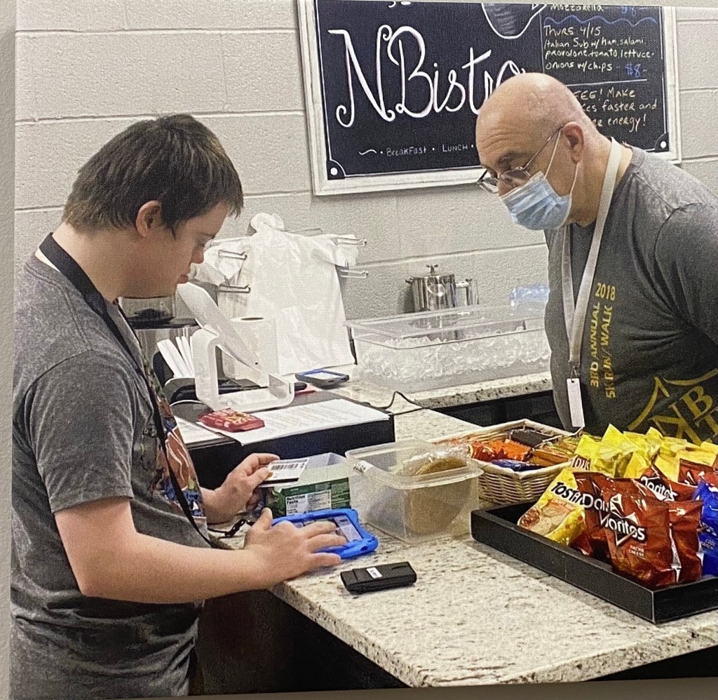 On my way out of the school building last night, Brian’s teacher drew my attention to a picture of Brian that is on the wall in the main office area. He is in the school Bistro about to purchase a snack with his debit card, using his iPad mini to communicate to one of the staff what he wants. It took lots of steps, practice, and a collective effort for this captured moment in time. I am very proud of this achievement that my son worked so hard for. To some, this may be a small or insignificant thing, but to Brian, and to those who know and love him, it is a major milestone and a testimony to what love, patience, and persistent teaching can do. Thank you, New Beginnings, for being Brian’s second home of learning and love. We are so glad that you are at the helm of Team Brian and look forward to even more progress this year! 😊❤️👍🏻 I know Brian would say “thank you “ if he could, but I believe his actions speak louder than any words he could say…❤️❤️❤️❤️